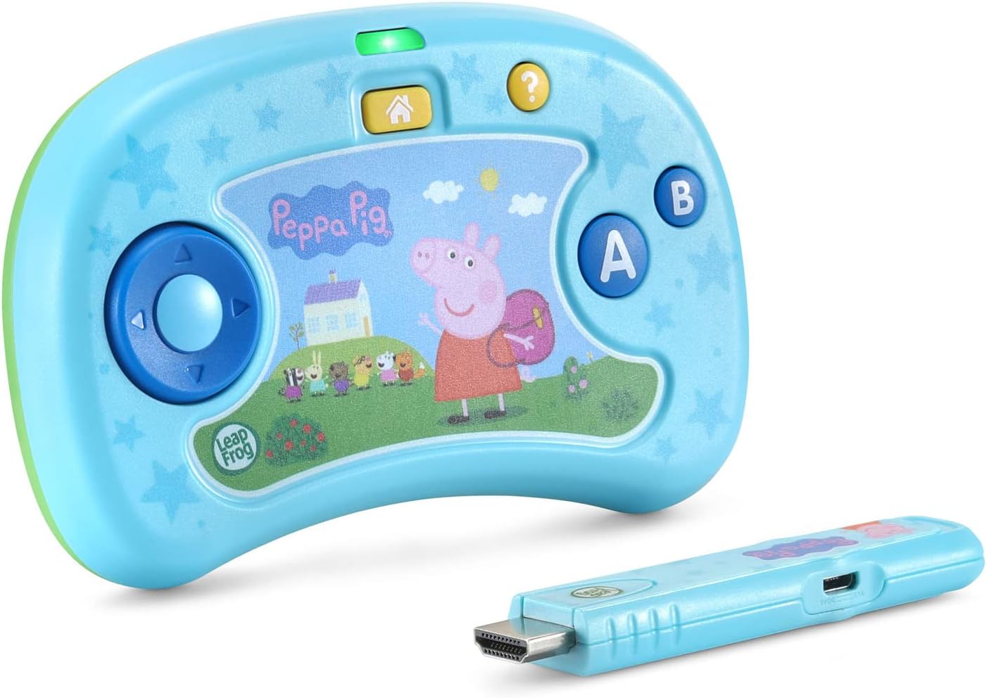 Get ready for a fun-filled day of muddy puddles and more with the Peppa Pig Peppa’s Big Day video game. Plug in and play eight games with Peppa Pig using the wireless controller. No web connection, downloads or account setup required. Join Peppa Pig for an oinktastic day at home, playgroup and on a field trip. Little piggies will be excited to help Peppa Pig count ingredients for recipes with Mummy and Daddy Pig or help her sort items to clean her messy room. Preschoolers can then go to playgroup with Peppa Pig to explore rhymes and play a game of freeze dance. Go on a field trip and help her compete in a sack race by matching colors, shapes and letters or discover letter sounds and select the correct target to practice archery. Play the games again and again from the Quick Play menu. Save unique game progress with up to five player profiles so the whole family can play. Intended for ages 4+ years. Requires 2 AA batteries. Batteries not included.